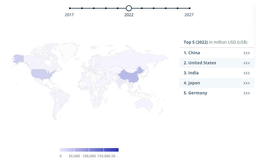 Market sizes are determined through a combined top-down and bottom-up approach, building on a specific rationale for each market segment. As a basis for evaluating markets, we use annual financial reports of key players, industry reports, third-party reports, and survey results from primary research (e.g., the Statista Global Consumer Survey). In addition, we use relevant key market indicators and data from country-specific associations, such as GDP, population, internet penetration, smartphone penetration, consumer spending, and healthcare spending. This data helps us estimate the market size for each country individually.
